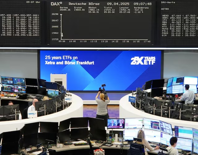 European shares fell on Wednesday as the rollout of steep U.S. retaliatory tariffs deepened fears over trade war-driven economic damage, spilling over into bond markets.