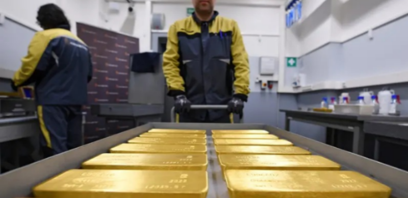 واستقر مؤشر الدولار قرب أعلى مستوى في أسبوعين، مما يزيد من تكلفة الذهب على المشترين من حائزي العملات الأخرى.